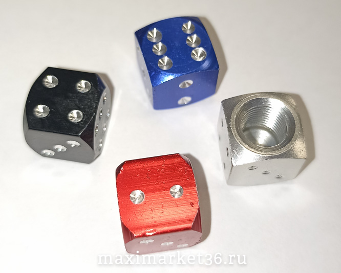 Колпачки золотника декоративные КУБИКИ цветные, металл ( компл 4 шт)