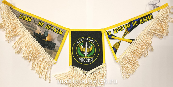 Вымпел ТРОЙНОЙ большой с бахрамой ВОЙСКА ПВО на 2 присос(ткань)