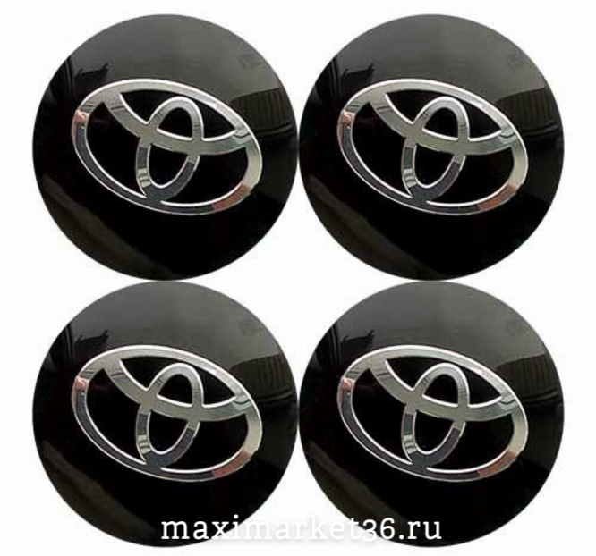 Наклейки на колпак ступицы с эмблемой D=65мм TOYOTA (4шт) ВЫПУКЛЫЕ ЧЁРНЫЕ