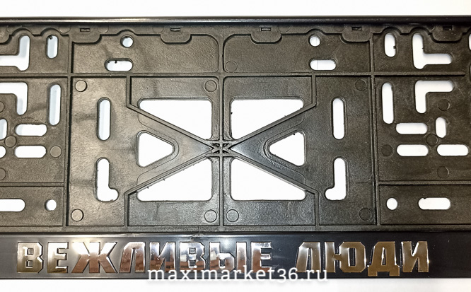 Рамка номерного знака SILVER с защелкой и надписью «ВЕЖЛИВЫЕ ЛЮДИ»Standart рельефная