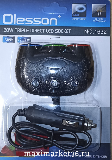 Разветвитель прикуривателя 1632 OLESSON 12/24V 3 гнезда -4866