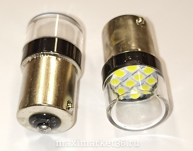 Автолампа P21W (BA15s) одноконт 10 SMD 1156 (3030) + ЛИНЗА WHITE 24V DIM